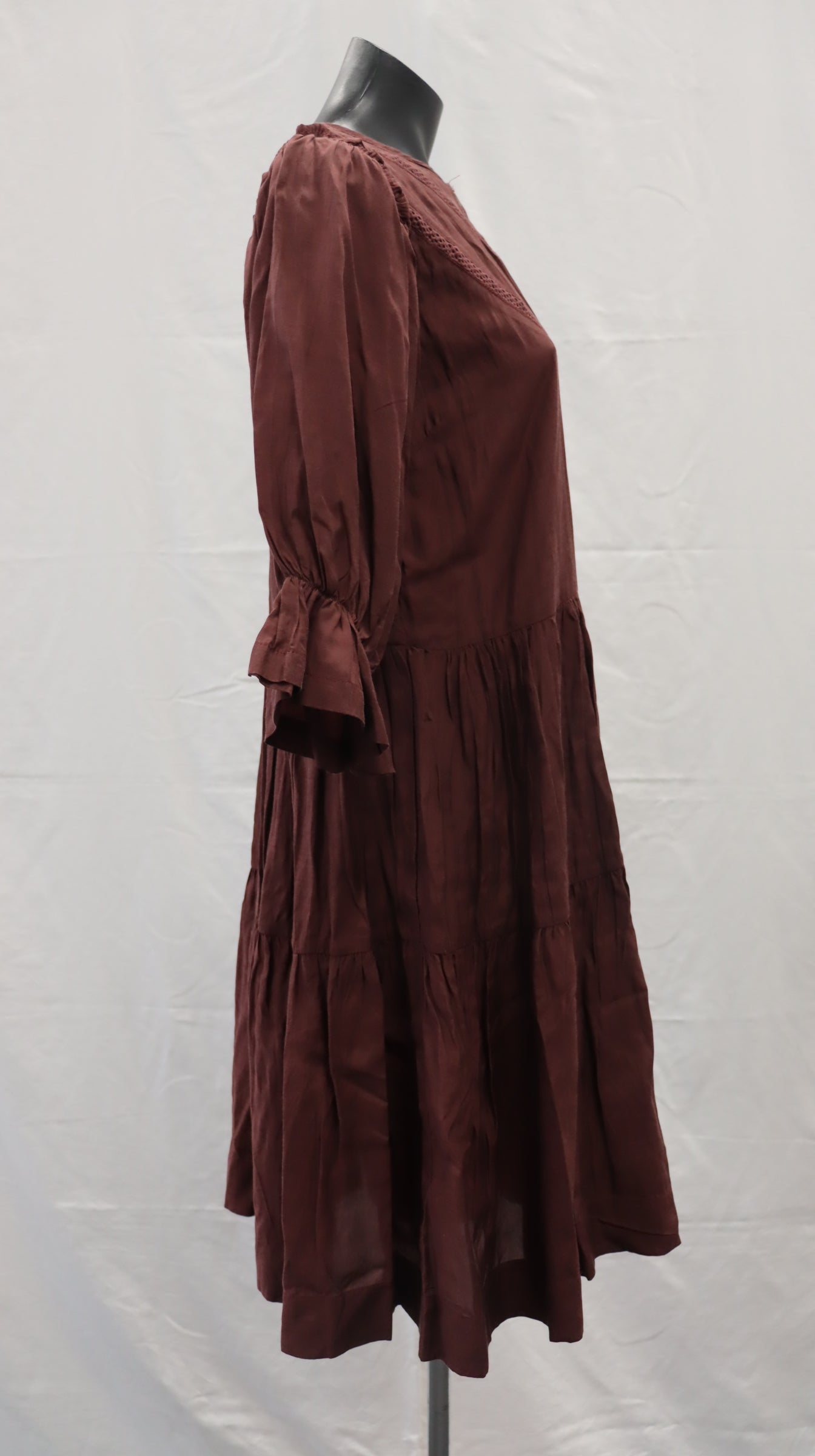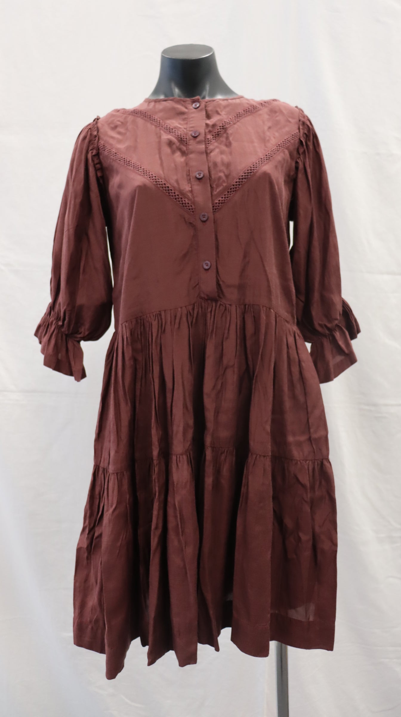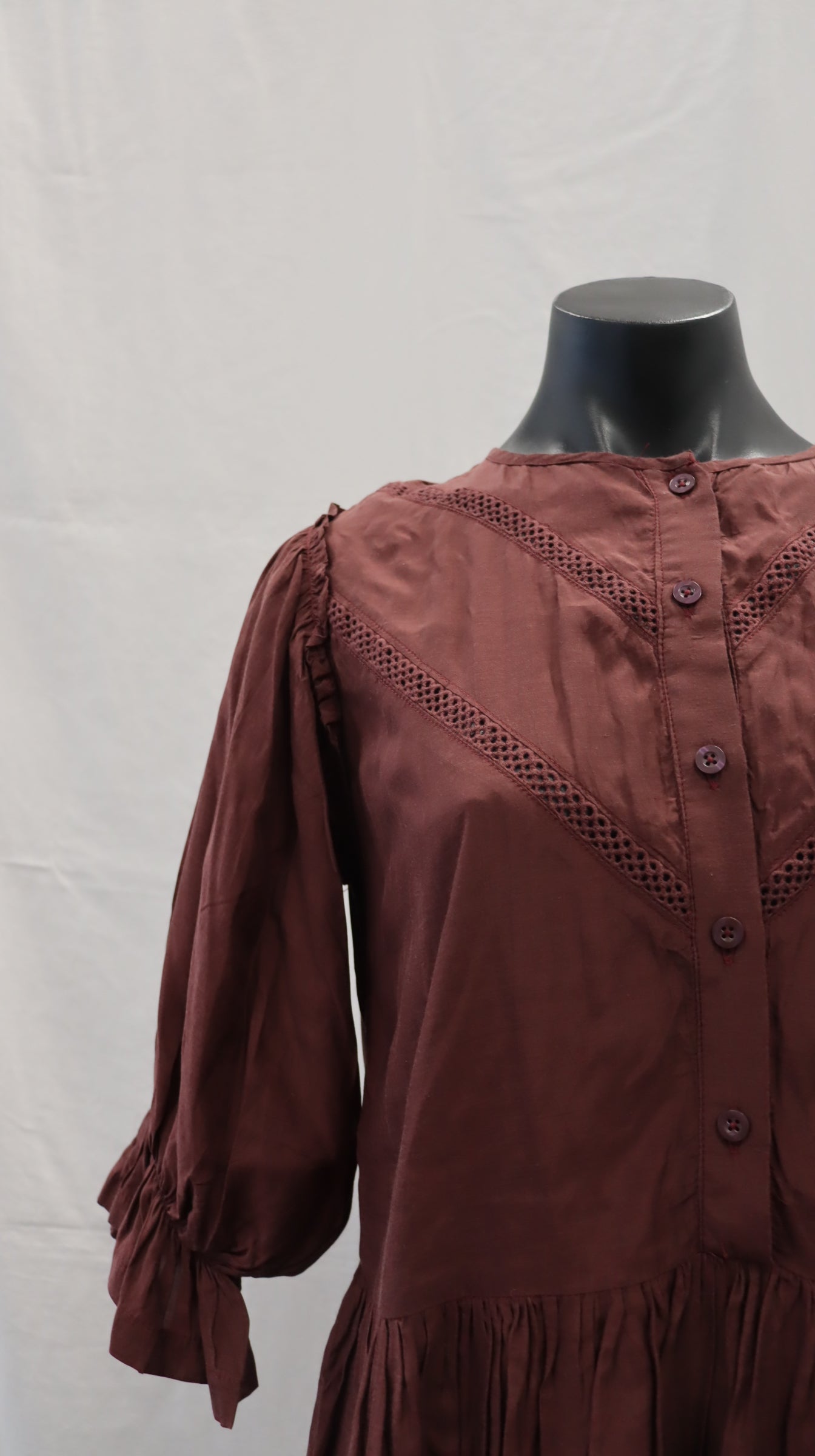 Buttons from neck to waist, half sleeve with elastic cuff and small frill, two tiered, cotton