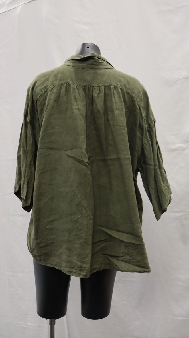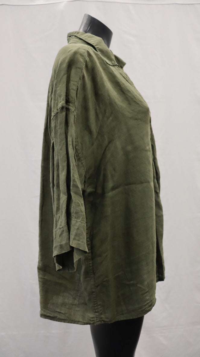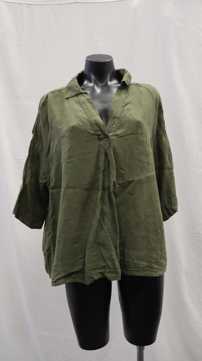 V neck with turn down collar, drop shoulder, half sleeve, oversized fit, linen