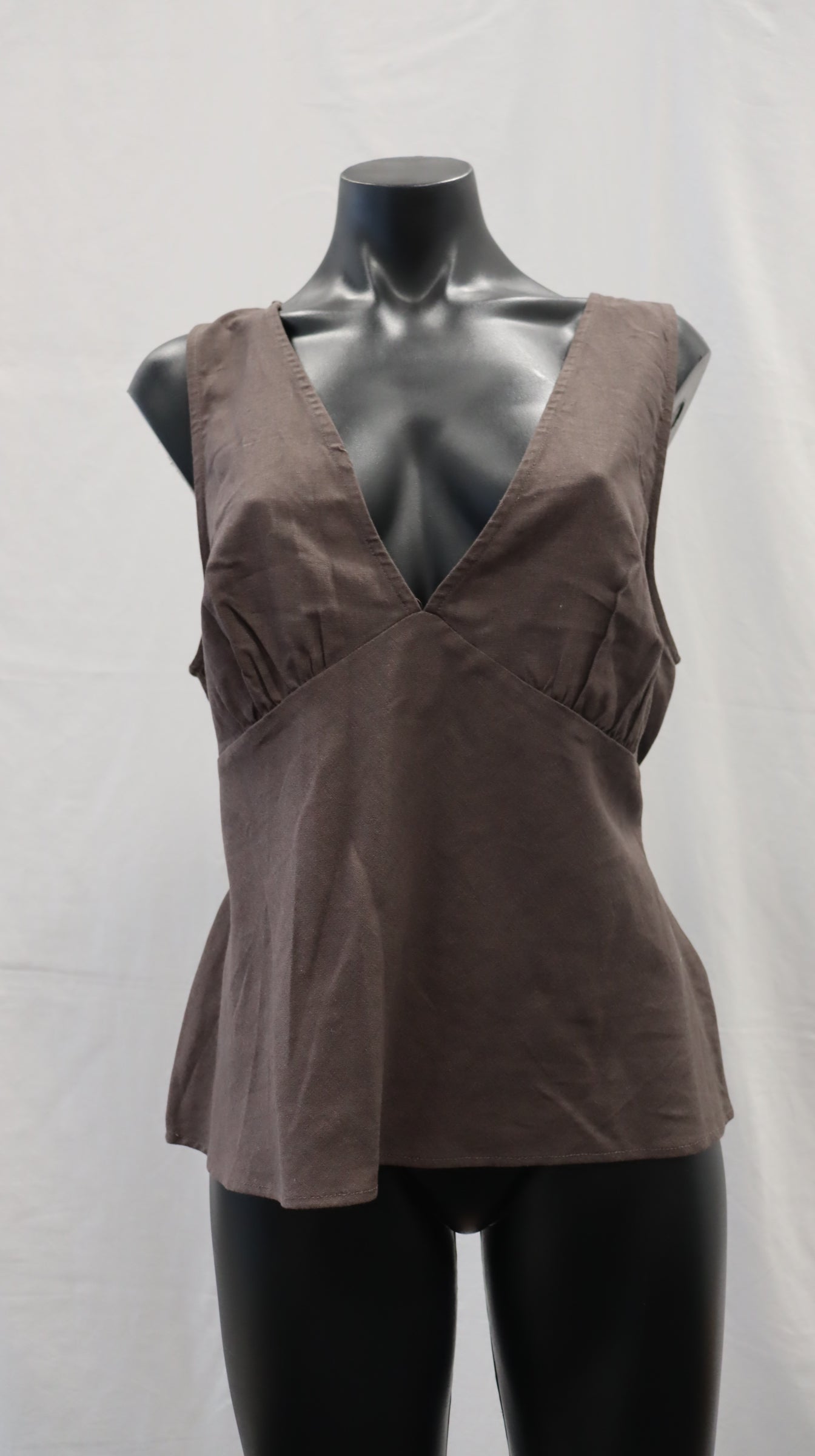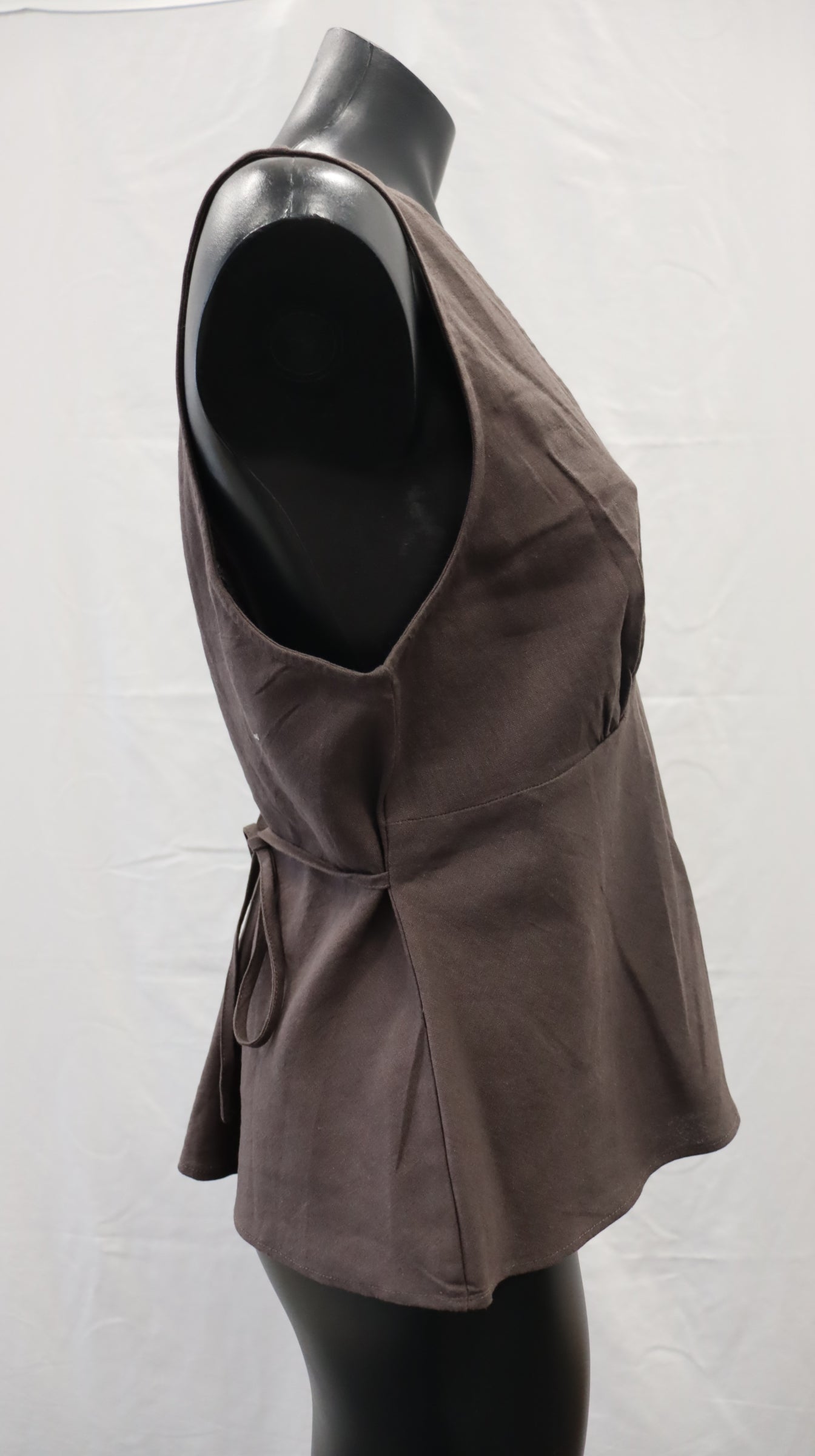 Deep v neck, sleeveless, side tie detail, 55% linen 45% viscose