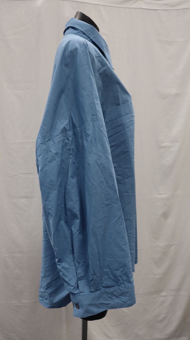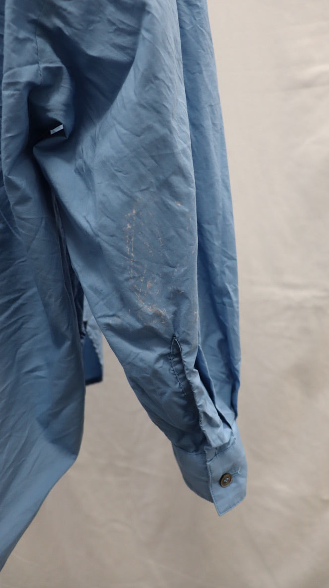 Oversized, drop shoulder long sleeve, large chest pockets, there is a bleach mark on the right sleeve